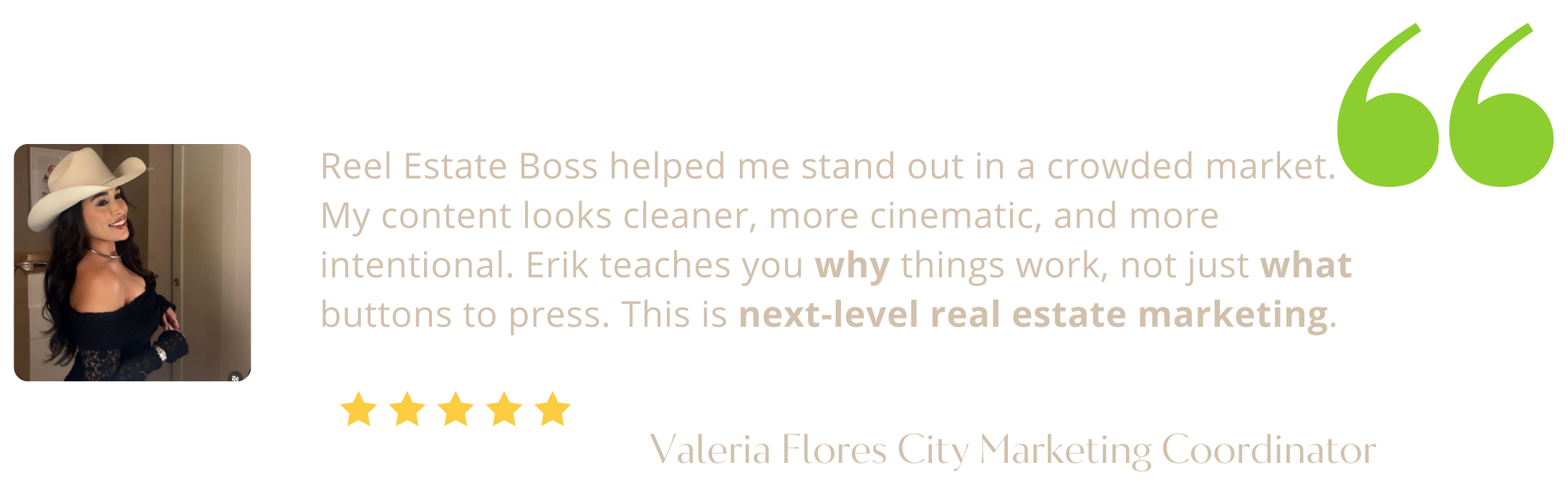 Get feedback, support, and exclusive tips from fellow real estate creators inside the Reel Estate Boss Circle.